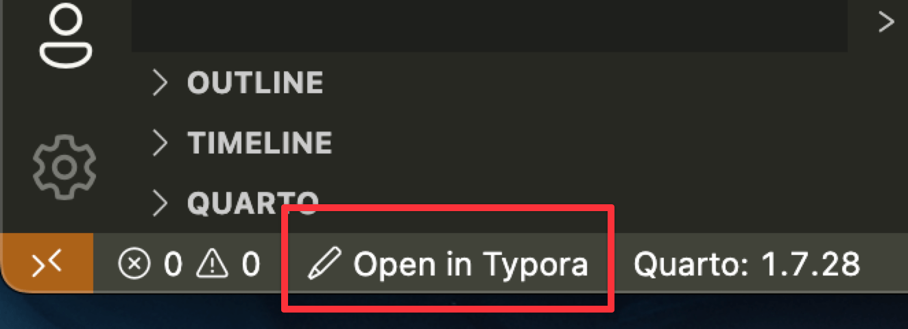One point of friction in this workflow is getting a .qmd file in Positron open in Typora. I typically need to right click on the .qmd file in the File Explorer Pane, select “Reveal in Finder” to open it in macOS Finder, then right click on the .qmd file in Finder, select “Open With” and finally choose Typora: