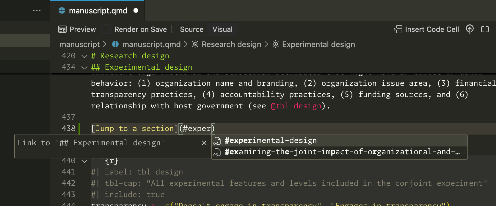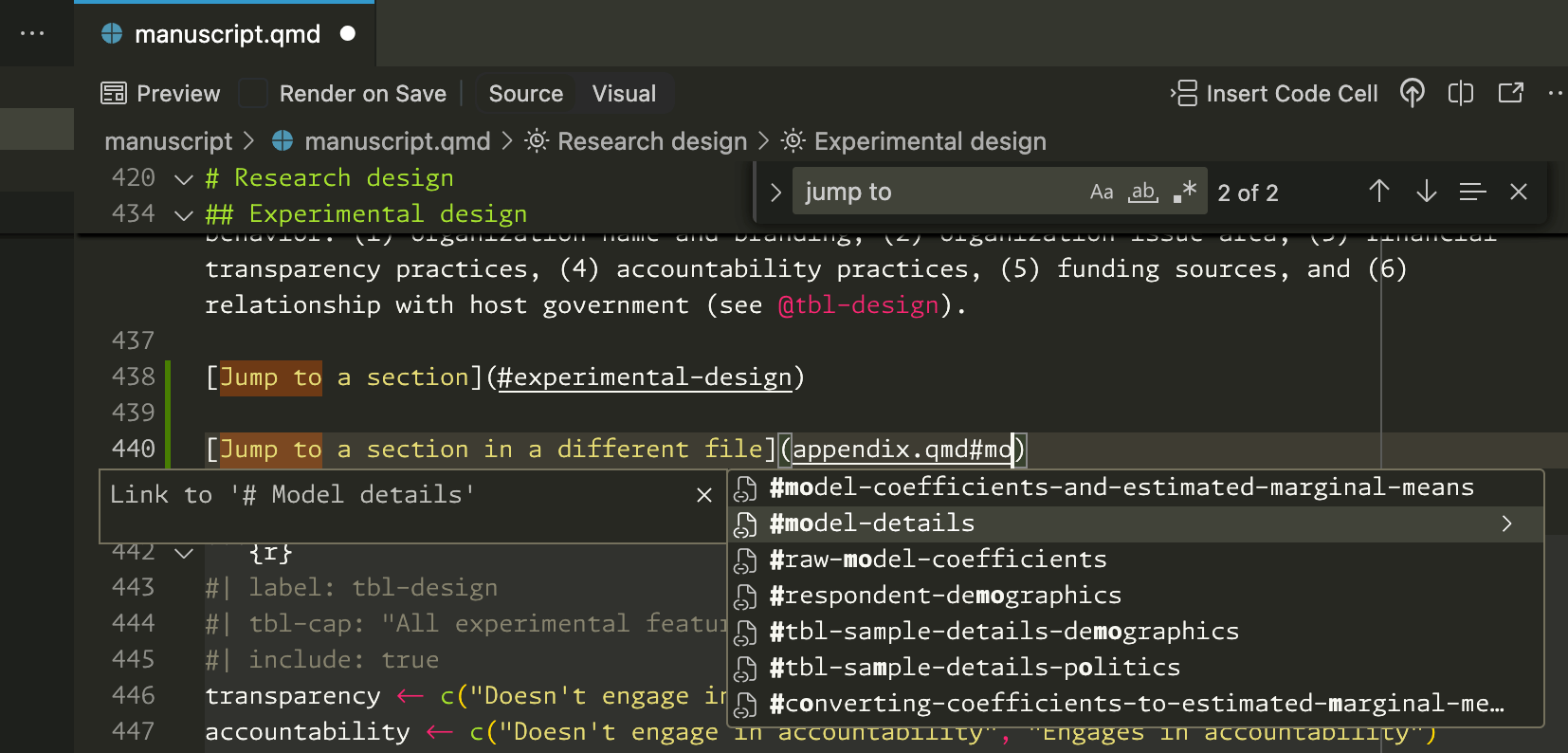 My normal workflow for writing documents in Quarto Markdown (and R Markdown before that) is to open a .qmd file in multiple apps. I open files in Positron or RStudio when working on code-related stuff, and I open files in Typora when focusing more on writing and editing. (I rarely actually ever put them side-by-side, and don’t typically always have the same document open in each simultaneously—it depends on what I’m doing: mainly writing or mainly coding).